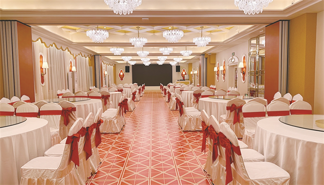 永利宮—優(yōu)雅大氣、雍容華貴,位于大酒店北樓一層,面積392㎡,可承接20桌的中小型宴會(huì)。
